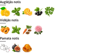 Sākuma notis: citrons, piparmētra, apelsīns, upene, koriandrs